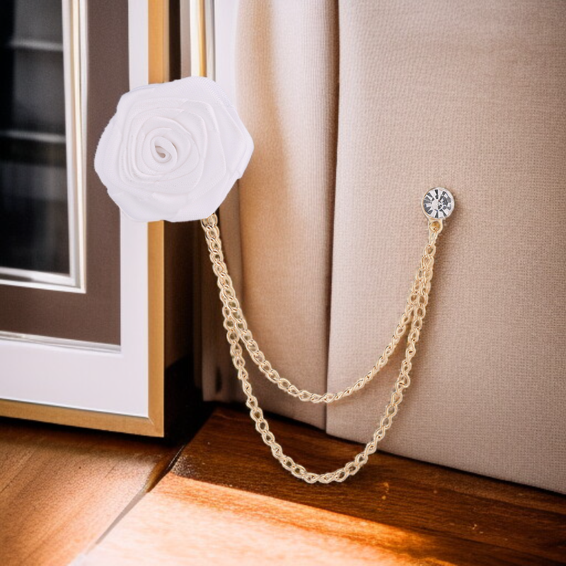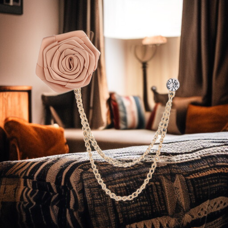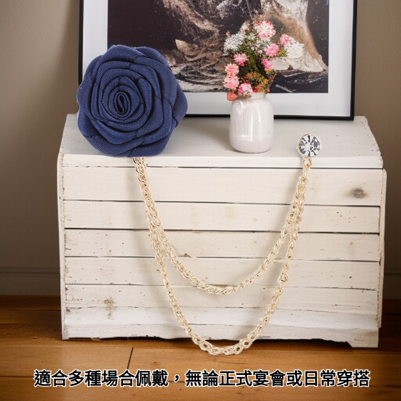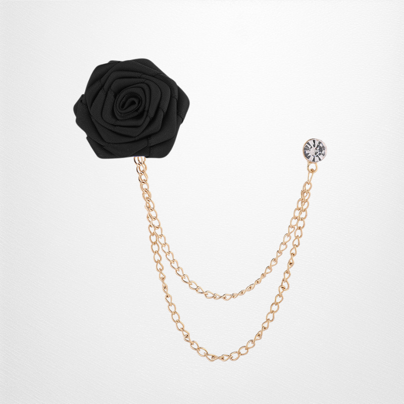 ● 黑色玫瑰花胸針設計,展現優雅神秘氣質,為西裝增添獨特時尚魅力,彰顯個人品味。