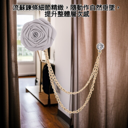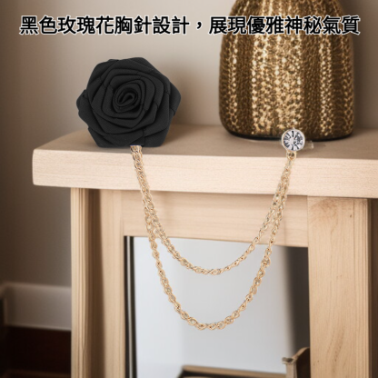 黑色玫瑰花胸針西裝飾品流蘇鍊條