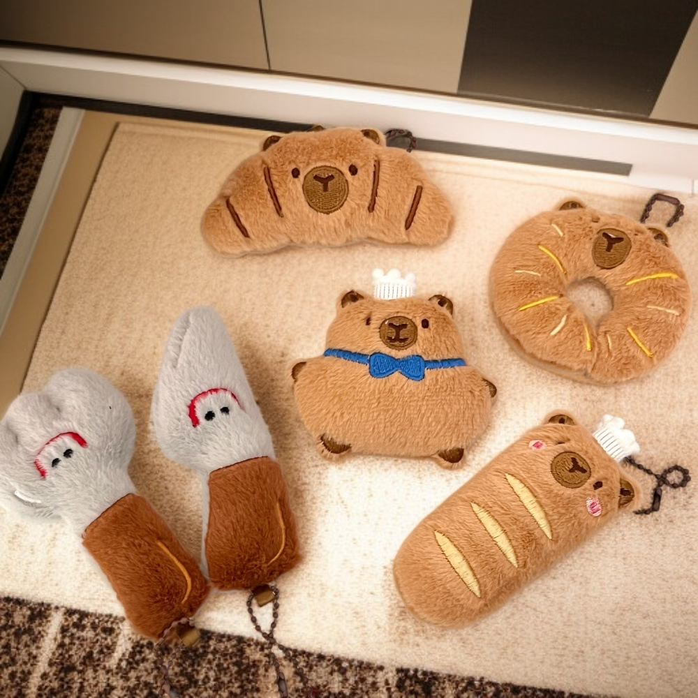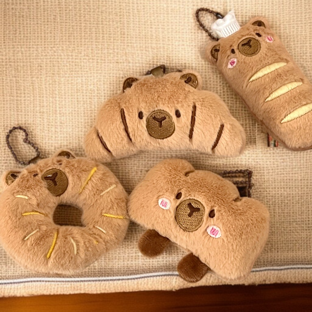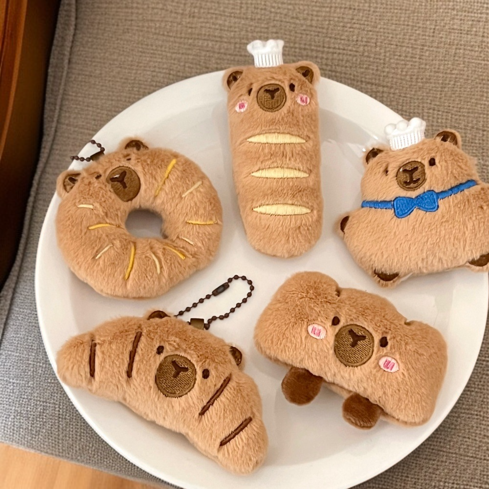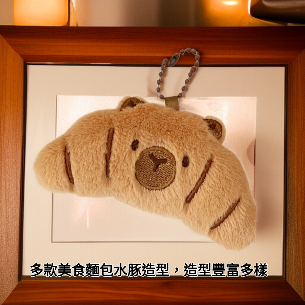 玩偶掛墜美食豚豚掛飾女孩卡通毛絨食玩公仔麵包水豚裝飾配件