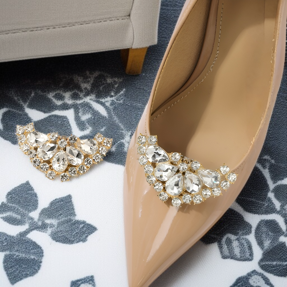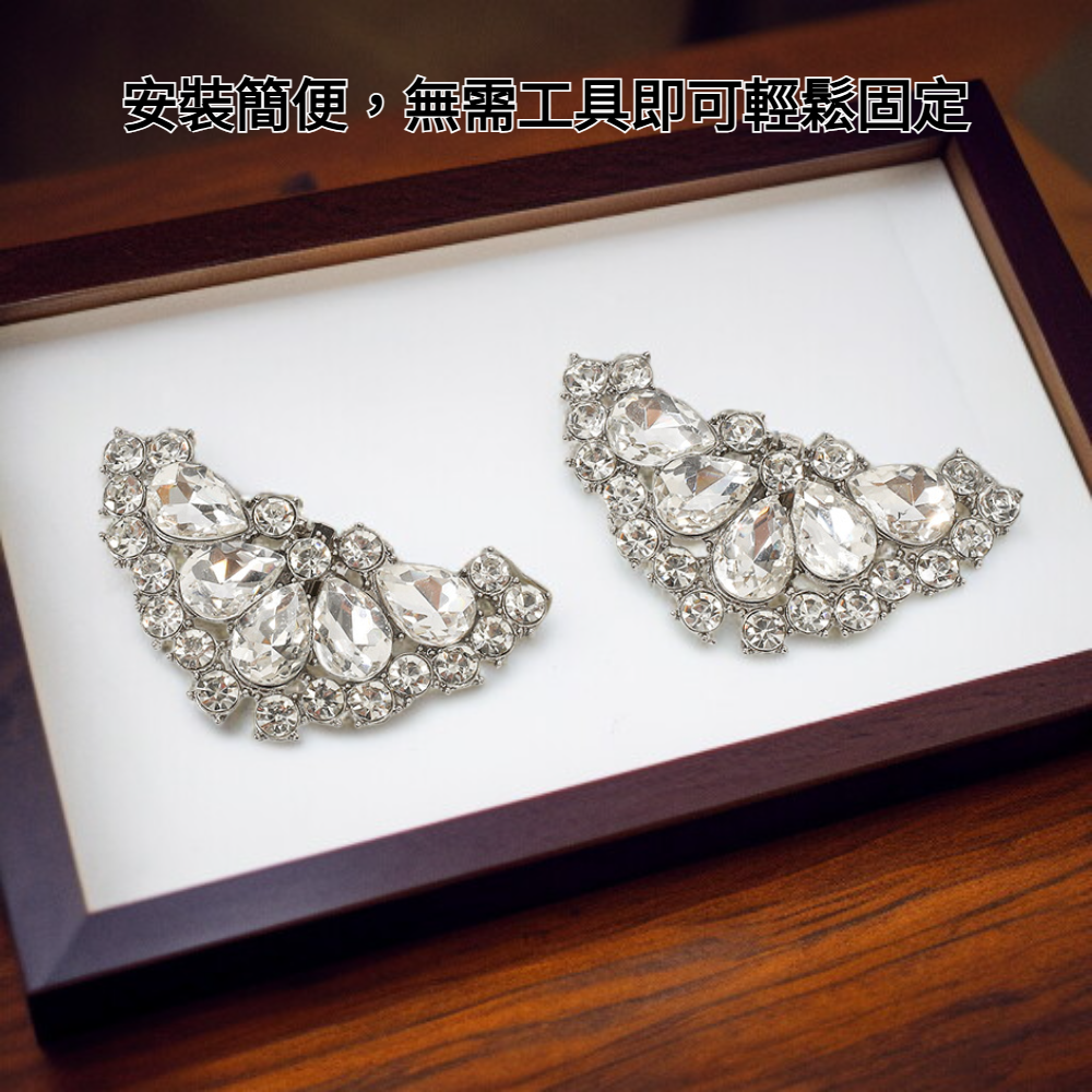 ● 方鑽高跟鞋扣採用高級閃亮水鑽設計,瞬間提升鞋履質感,讓每一步都閃耀迷人光芒,成為婚鞋及派對鞋的完美裝飾。